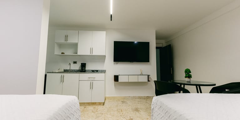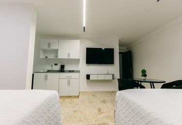 En nuestro apartahotel cuidamos cada detalle para que disfrutes de una estancia cómoda y segura. Nuestro servicio de limpieza garantiza espacios impecables, frescos y preparados para tu descanso en estancias largas, refrescamos tu espacio con limpieza completa cada 3 días.